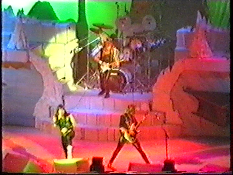 Moonchild (cut) The Evil That Men Do The Prisoner Wrathchild Infinite Dreams The Trooper Can I Play With Madness (cut) Heaven Can Wait Wasted Years The Clairvoyant Seventh Son of a Seventh Son The Number of the Beast Hallowed Be Thy Name Iron Maiden Run to the Hills Running Free Sanctuary Source: VHS-1![]()